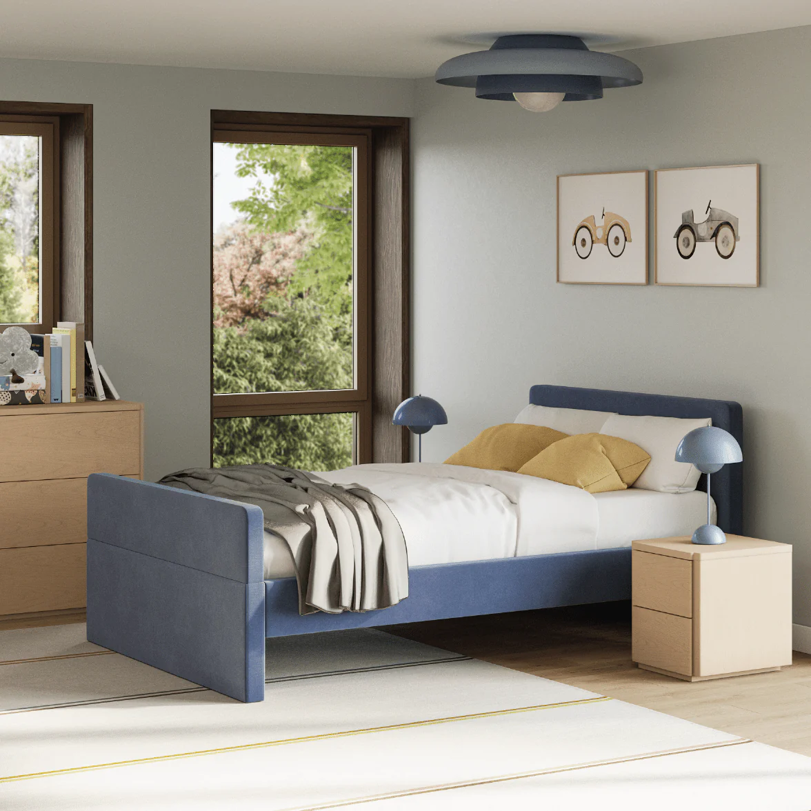 The Soho Bed is innovative, versatile and built to last. Available in customizable color combos in our signature stain-resistant fabric, this bed is expertly crafted to grow with your family for years to come. Arrives in 4 easy to maneuver boxes. Assembly required.